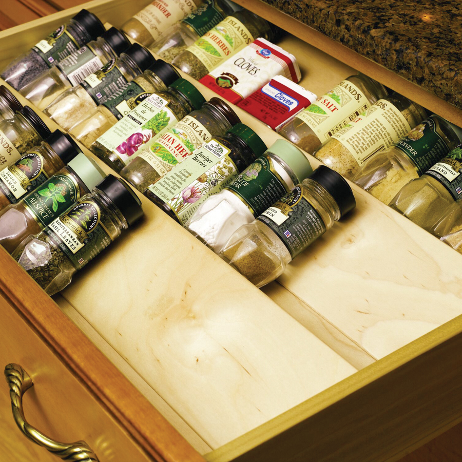 - Cut-to-size wooden spice divider.