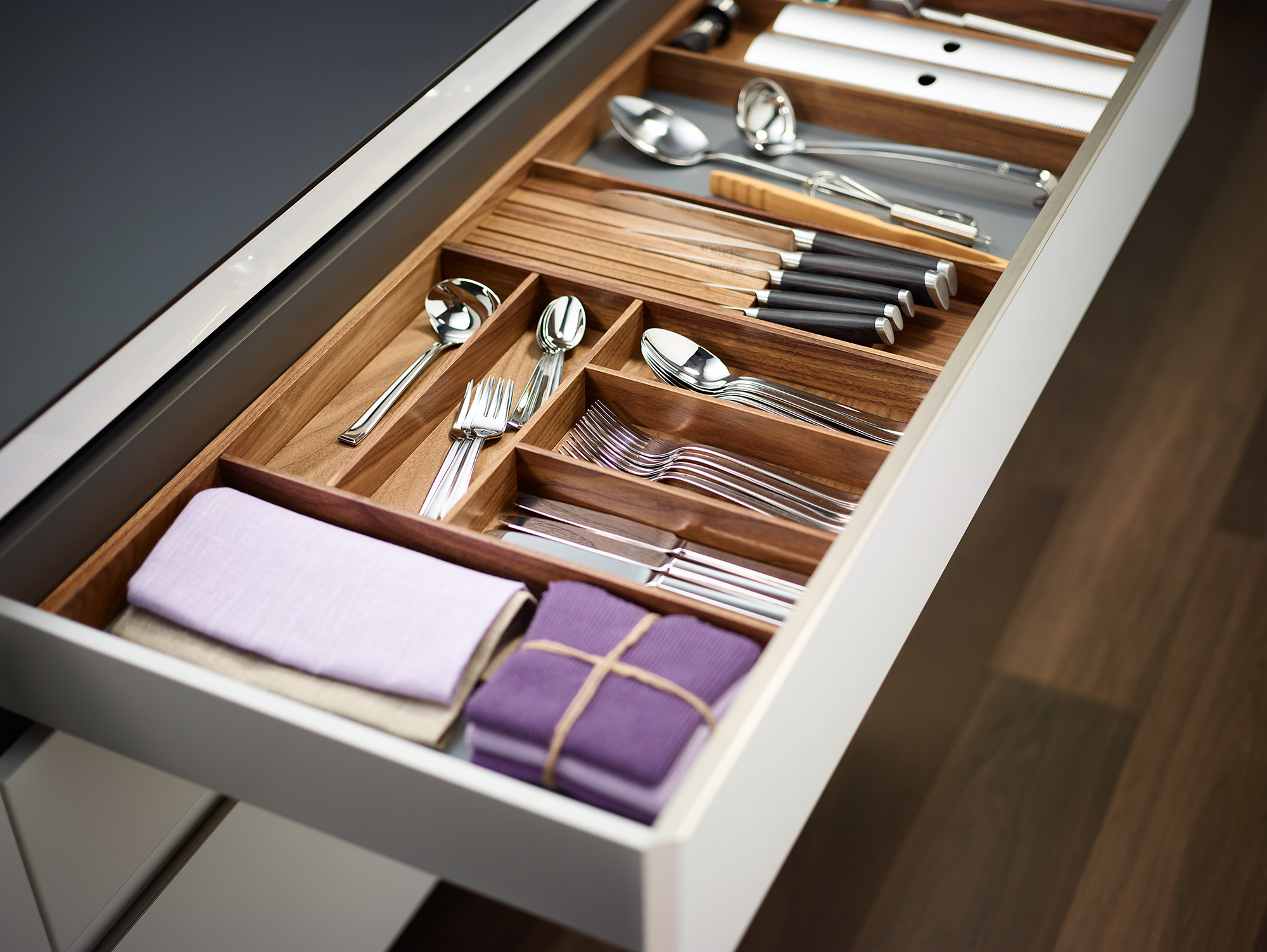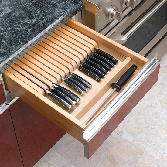 This maple hardwood drawer insert is ready out of the