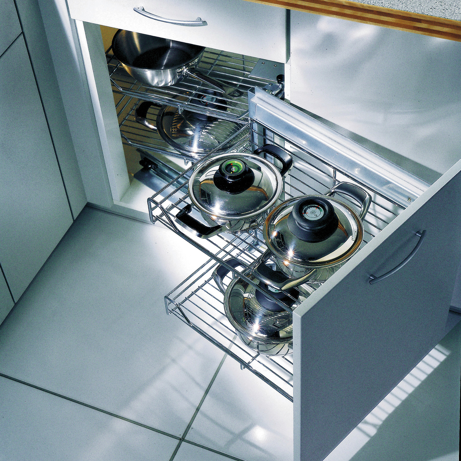 Pull-out storage system for pots and cookware.
