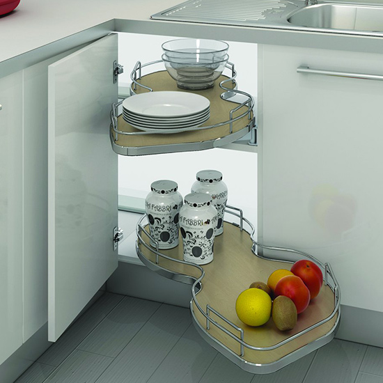 Four-basket storage solution for blind corners